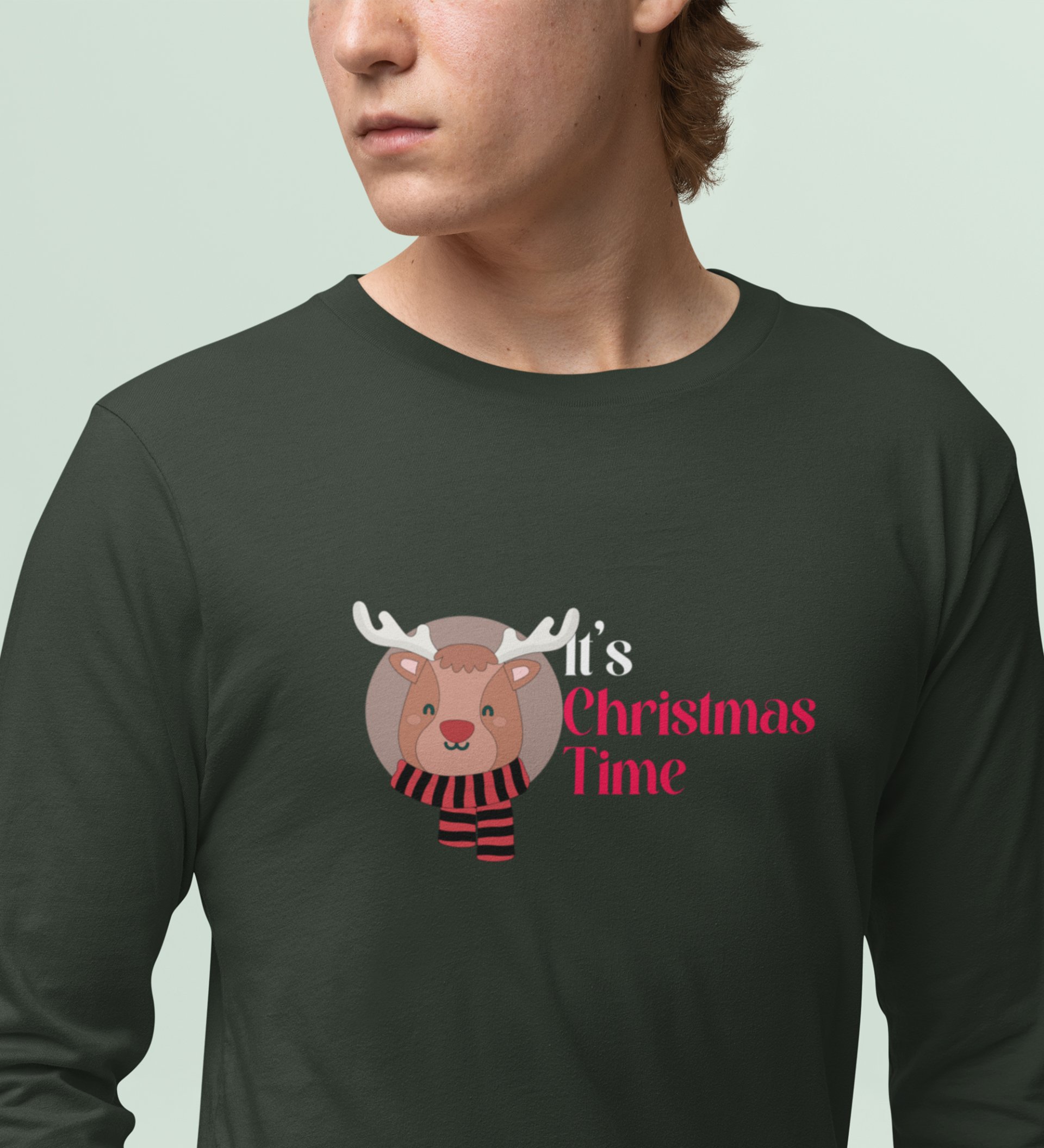 Christmas Arrival: Welcome Christmas WithGreenFull Sleeve T-shirt Perfect Gift For Kids Boys Girls