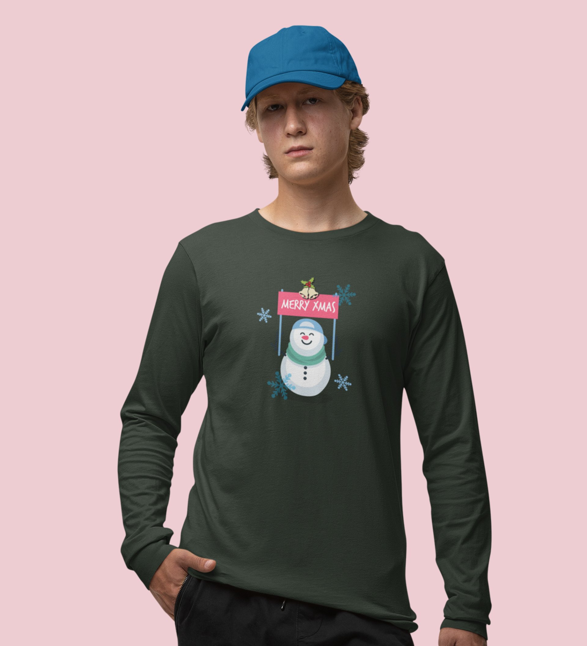 Christmas Bells: Best DesignerFull Sleeve T-shirt Green Perfect Gift For Christmas Eve