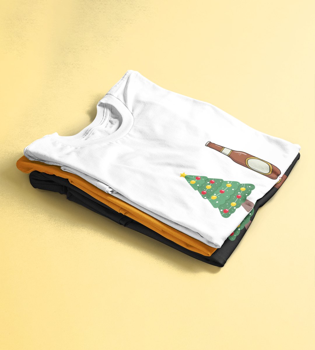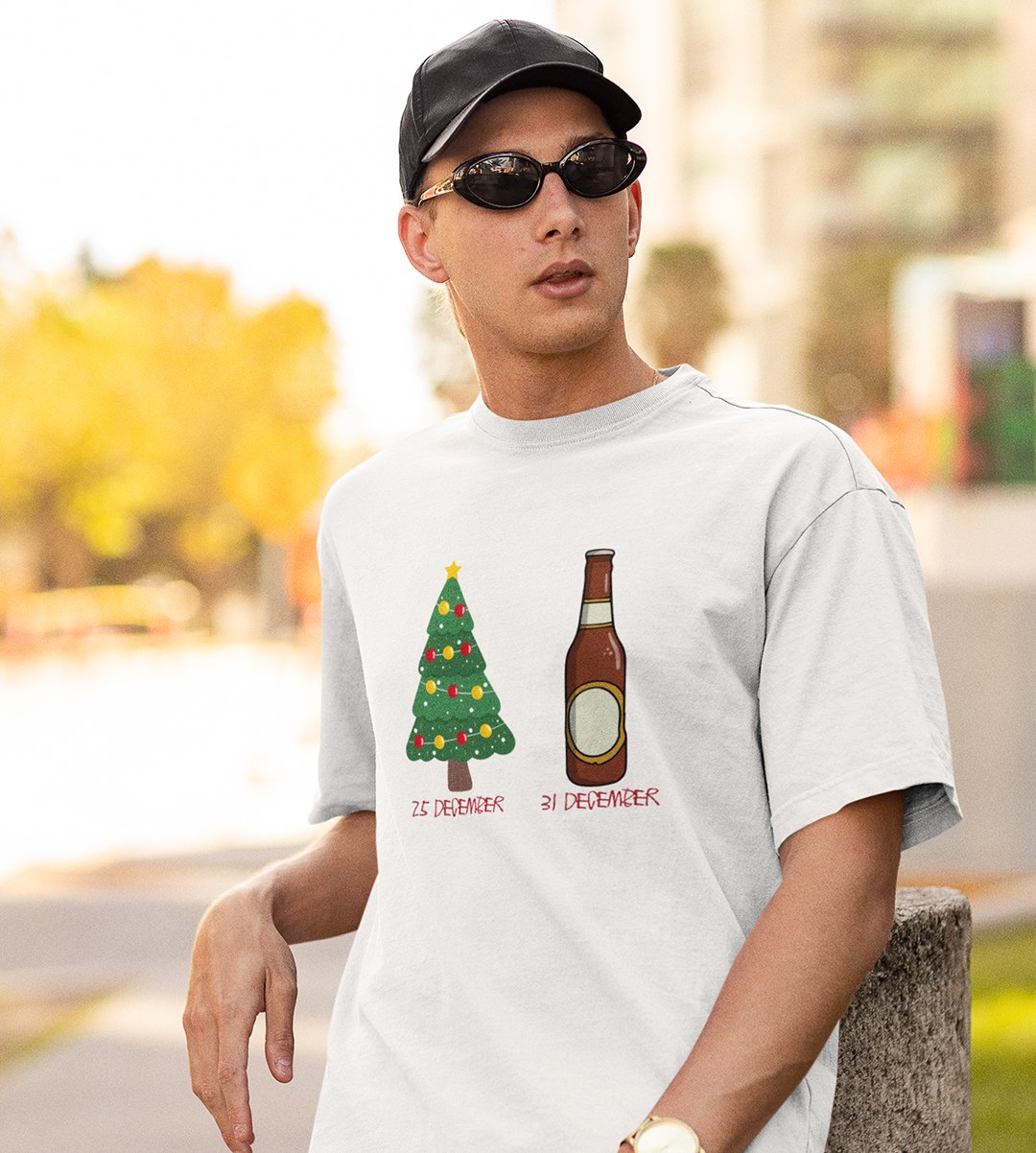 Christmas Cheer Later Chilled Beer: Humorously Printed T-shirt (White) Perfect Gift For Secret Santa