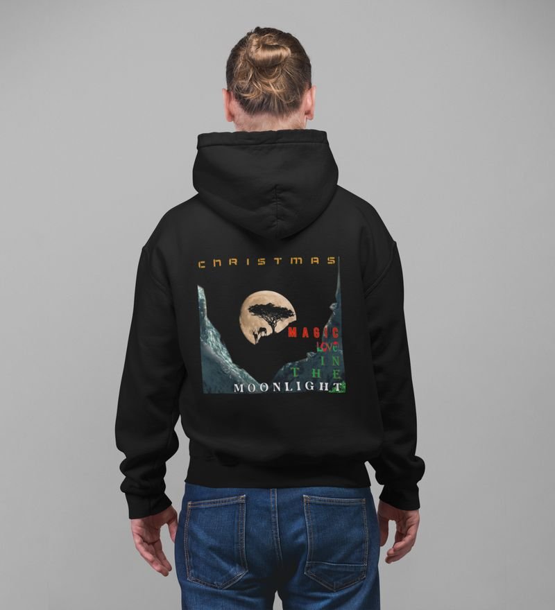 Christmas Magic Love Illuminated by Soft Moonlight Printed Black Cotton Hoodie