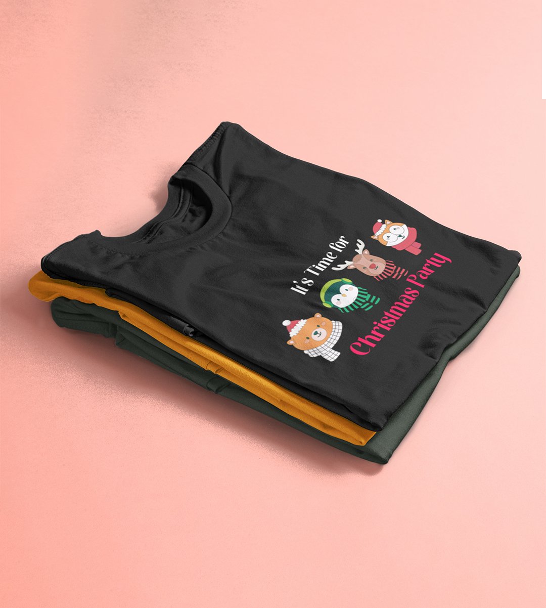 Christmas Party: Motivational Printed T-shirt (Black) Unique Gift For Secret Santa