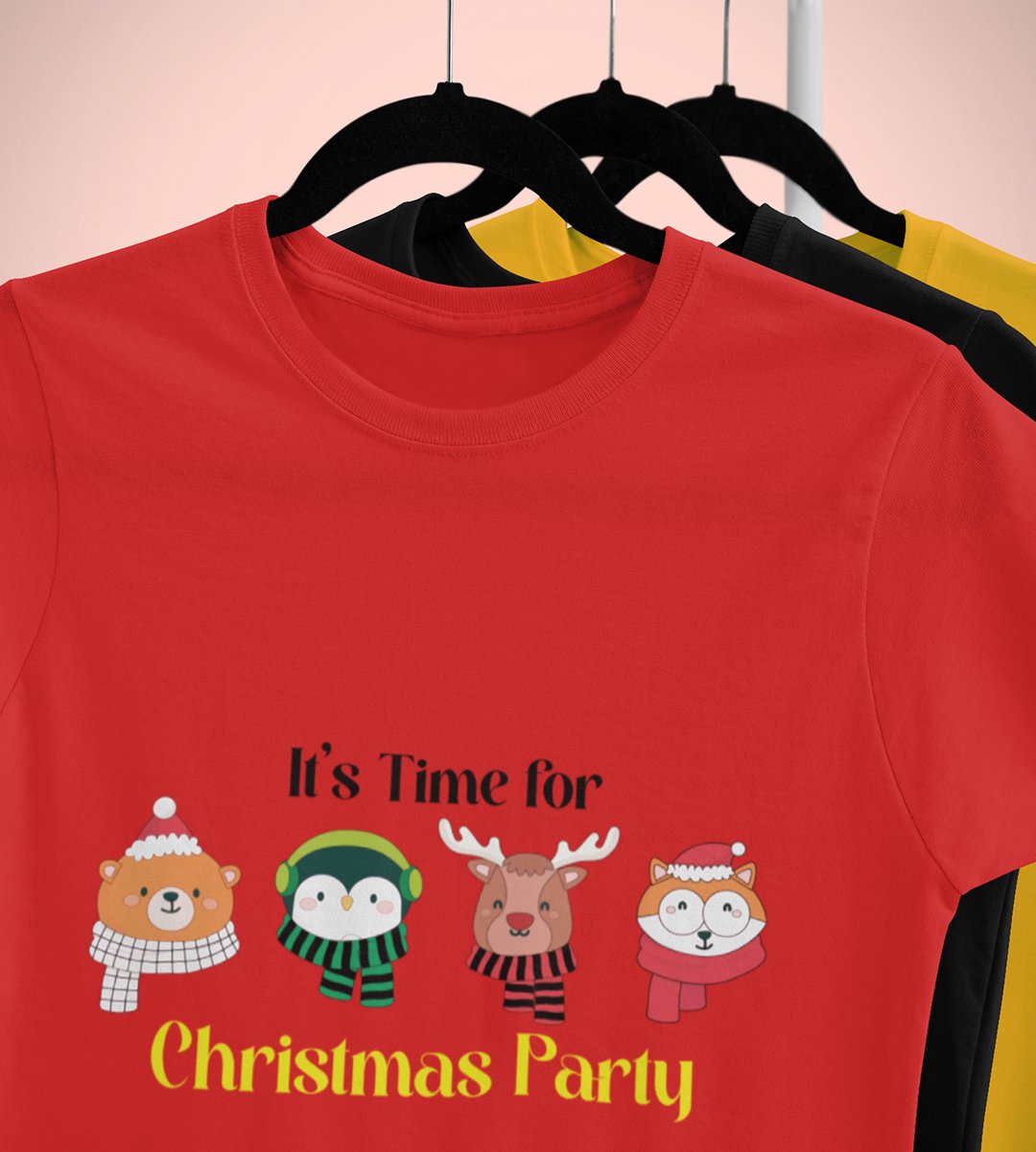 Christmas Party: Motivational Printed T-shirt (Red) Unique Gift For Secret Santa