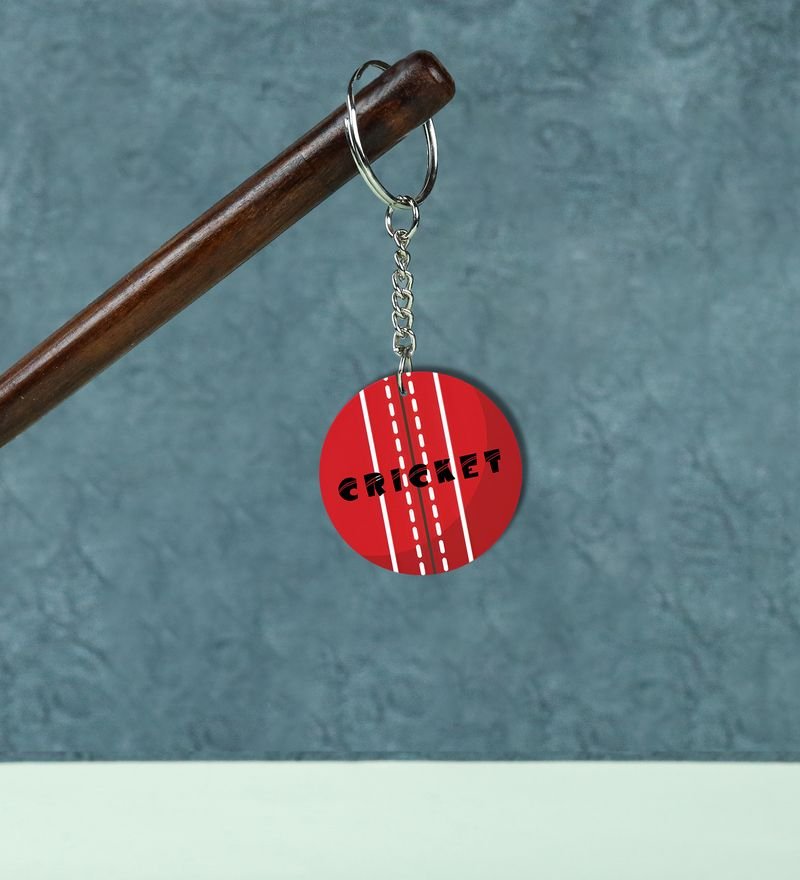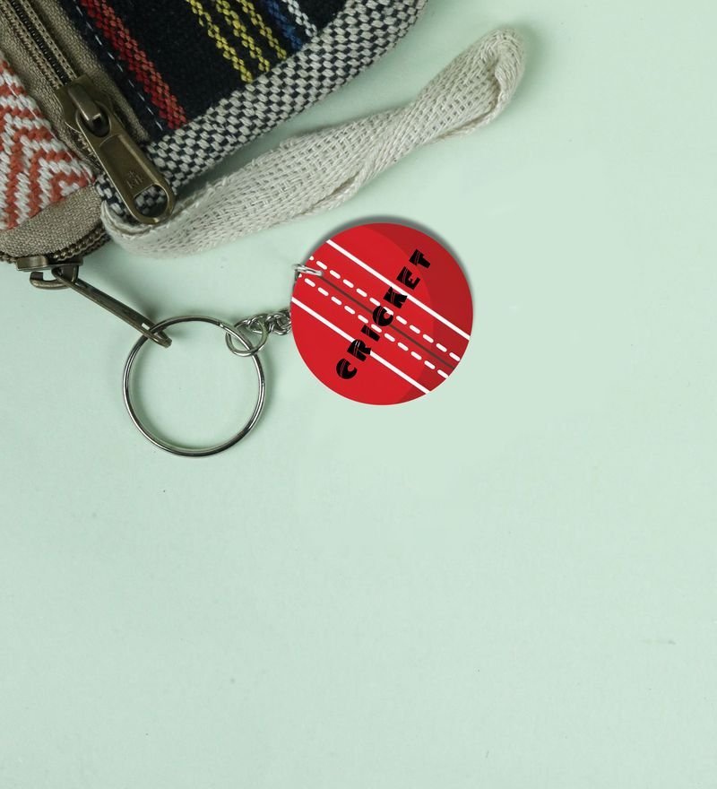 Classic Red Cricket Ball Printed Round Keychain Pack of 2