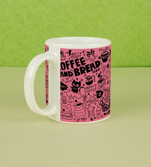 Coffee Bread and Doodles Artwork Printed Coffee Mug 250ml