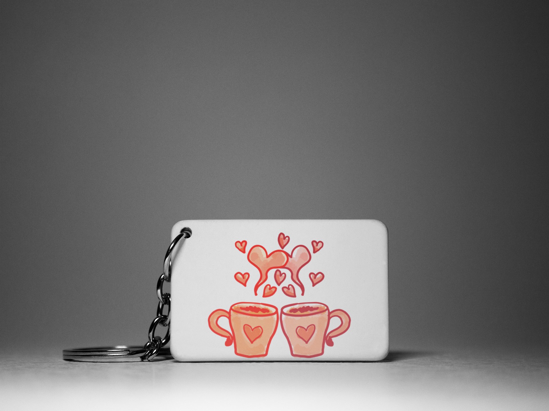 Coffee Cups-White -Valentine's Special Keychains(Pack Of 2)
