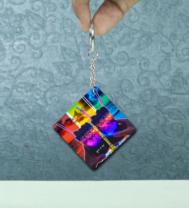 Bring carnival vibes wherever you go with these vibrant soft-serve drink printed keychains. Featuring colorful swirls and a playful Drink and You theme, this pack of 2 adds a fun, sweet touch to your keys, bags, or gifts.