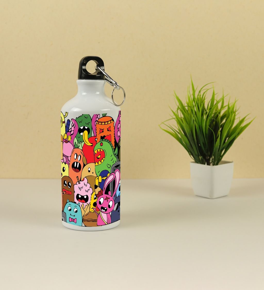 Colorful Shinie Eyes Creatures Doodles Printed Aluminium Water Bottle 600ml