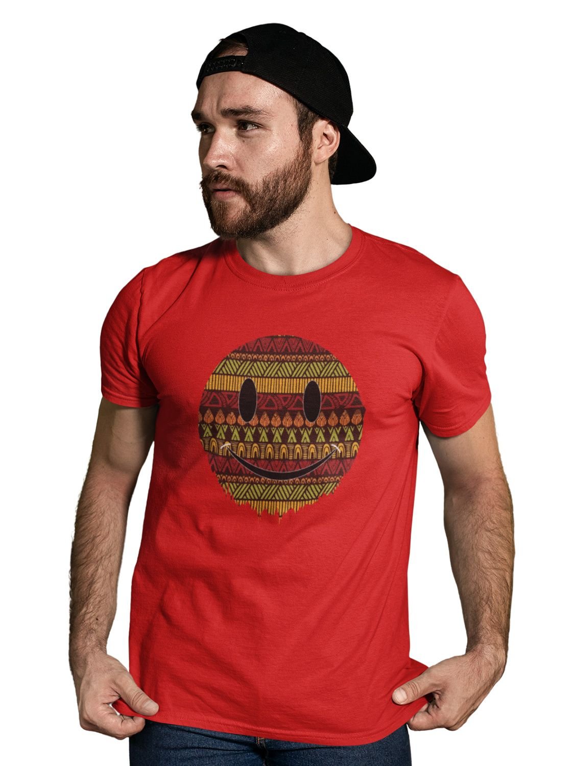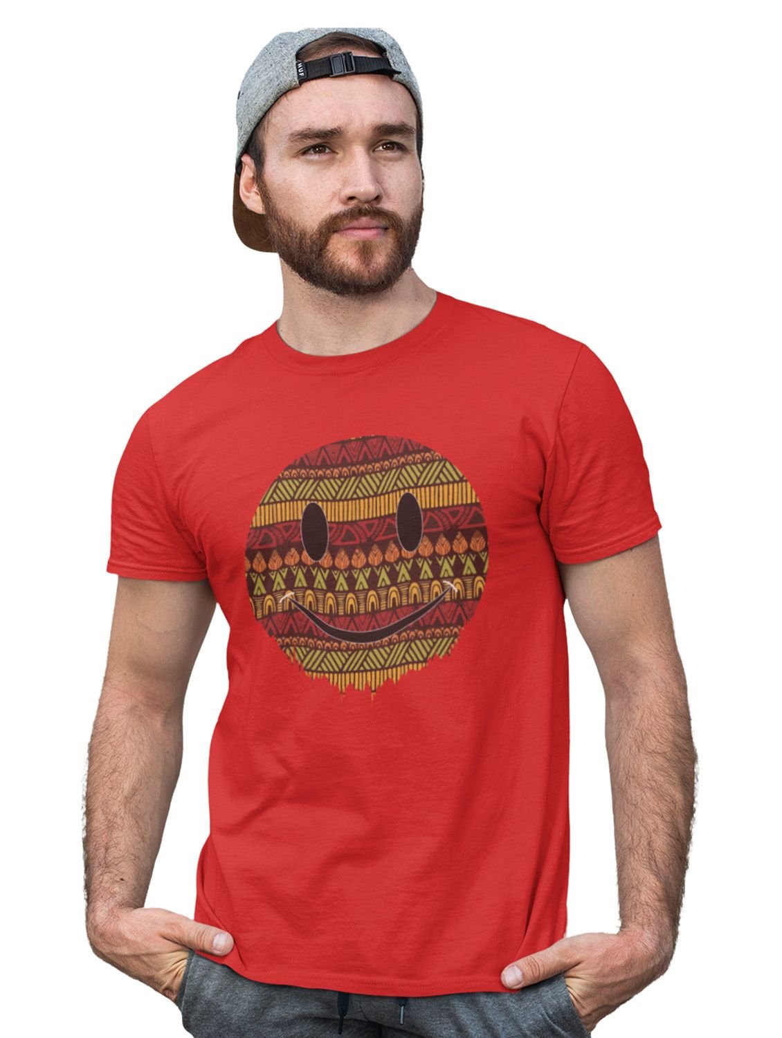 Colourful Patterns in Smiley Emoji Printed T-shirt (Red) - Clothes for Emoji Lovers - Foremost Gifting Material for Your Friends and Close Ones