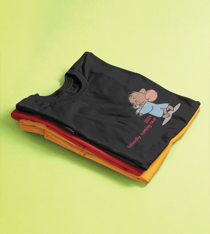 Come Faster 2024 Black Printed T-shirt For Mens On New Year Theme
