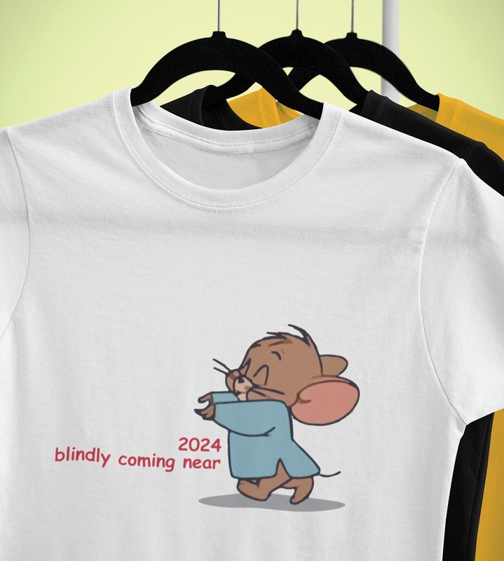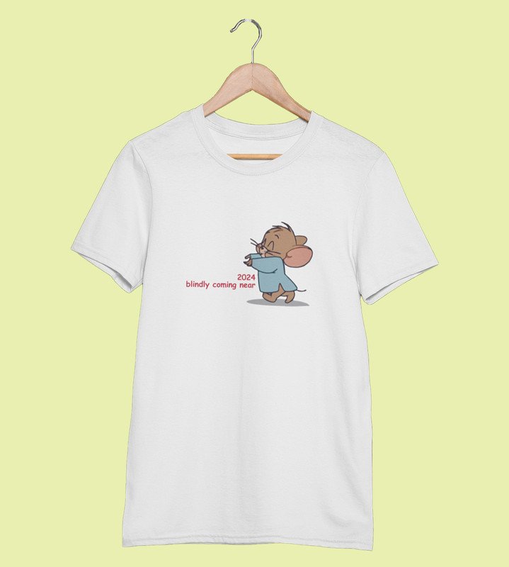 Come Faster 2024 White Printed T-shirt For Mens On New Year Theme
