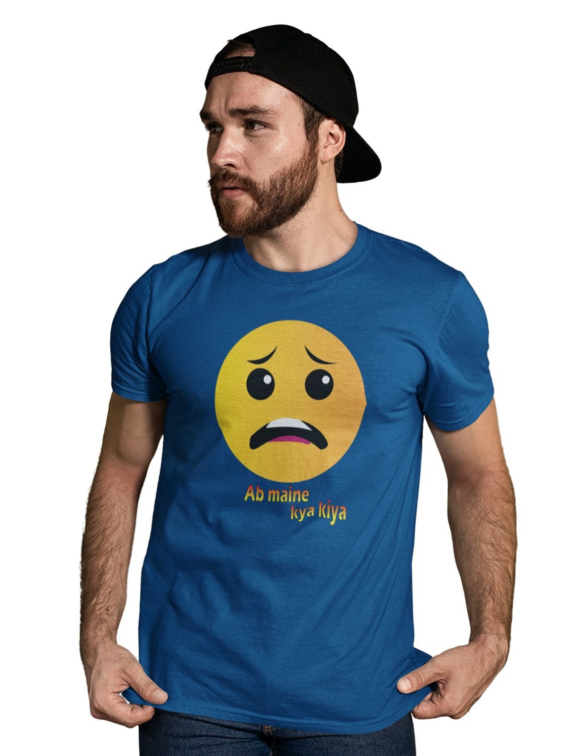 Confused Emoji Printed T-shirt (Blue) - Clothes for Emoji Lovers - Suitable for Fun Events - Foremost Gifting Material for Your Friends and Close Ones