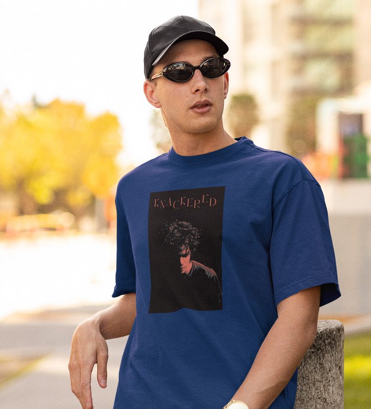 Conquered, Street Artistry: Blue Trendy Front Graphic Oversized Tee - Men's Edition