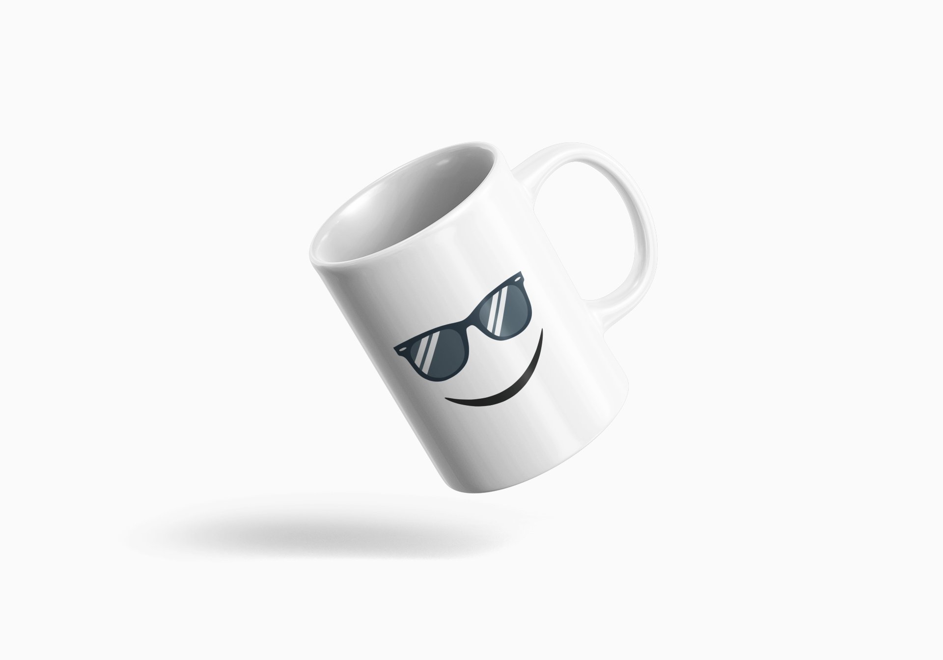 Cool Glasses, Frecky Smile Emoji- emoji printed ceramic white coffee and tea mugs/ cups for emoji lover people