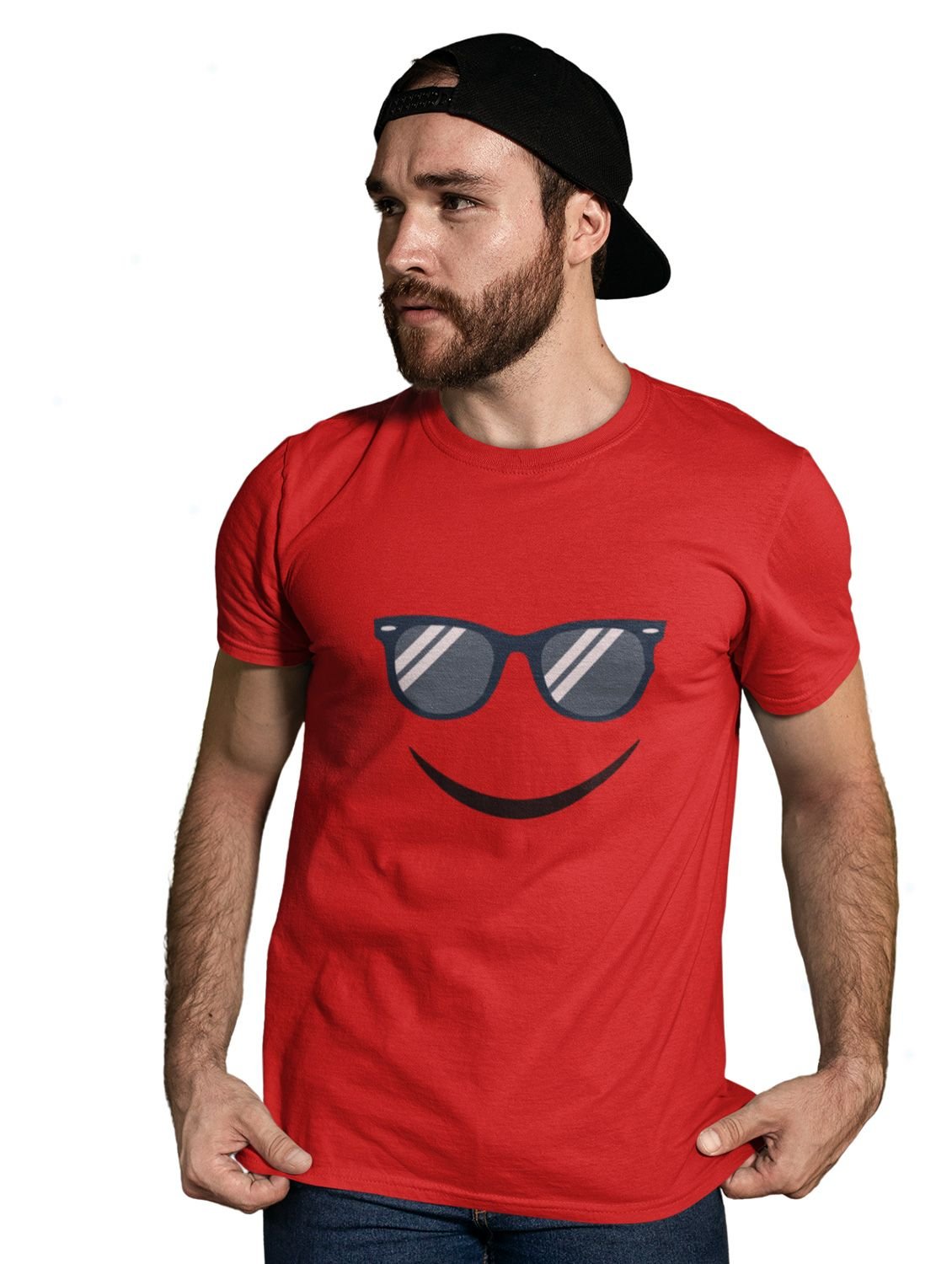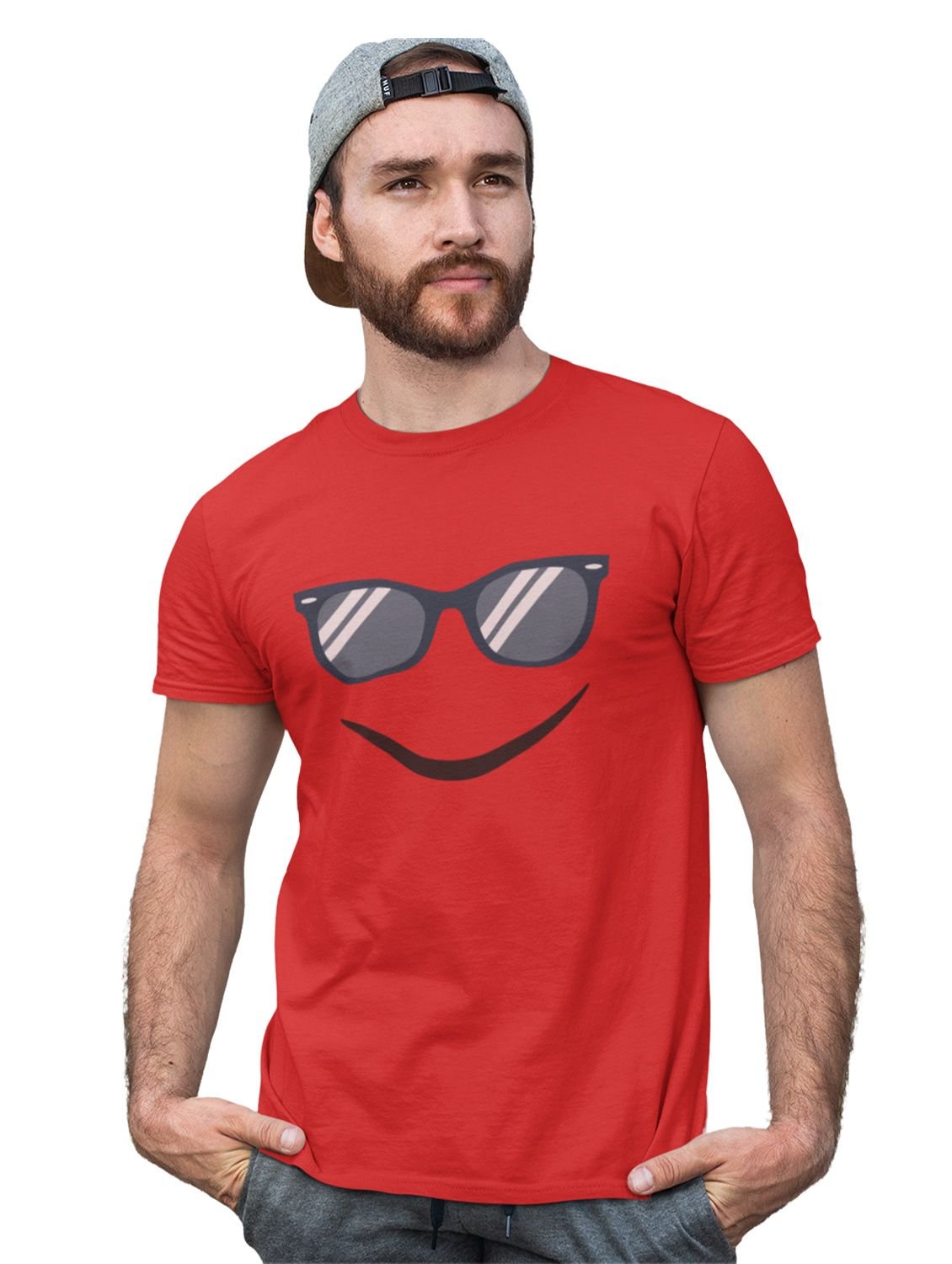 Cool Glasses, Frecky Smile Emoji T-shirt (Red) - Clothes for Emoji Lovers - Foremost Gifting Material for Your Friends and Close Ones