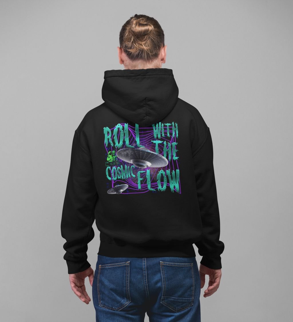 Cosmic Adventure Space Ship Roll with Cosmic Flow Black Cotton Printed Hoodies For Men
