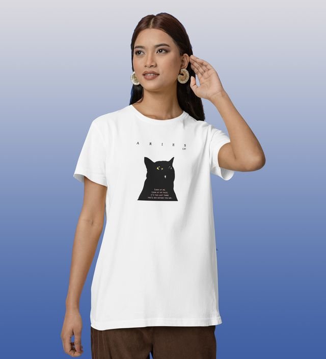 Cosmic Claws: Aries Cat Attitude Graphic Printed white T-Shirt