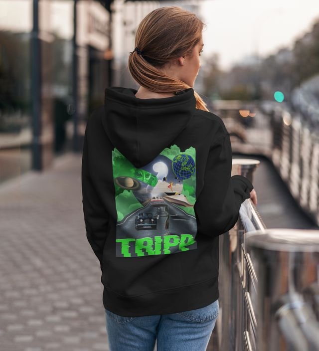 Cosmic Vibes Tripp Black Cotton Printed Hoodies For Women