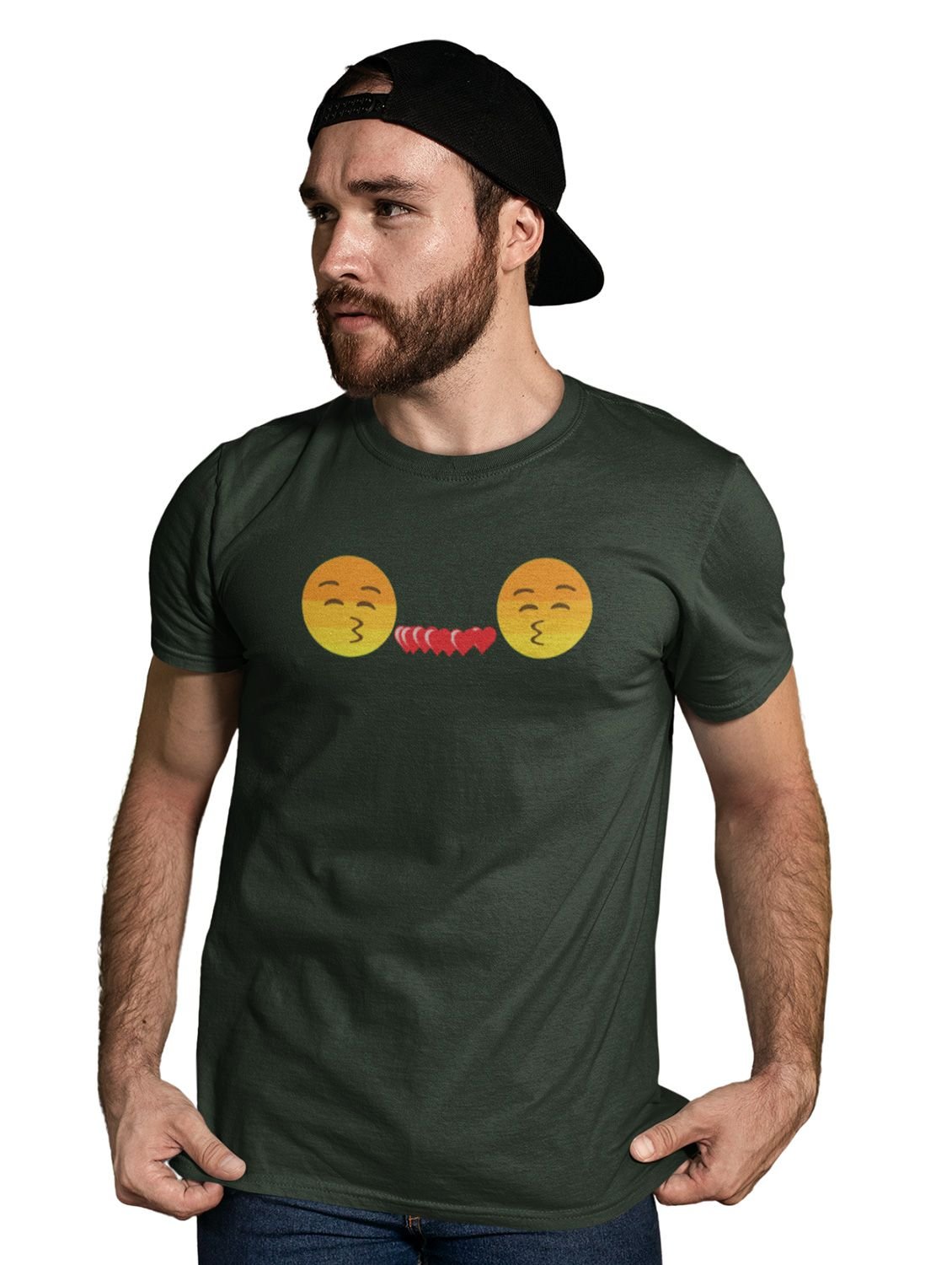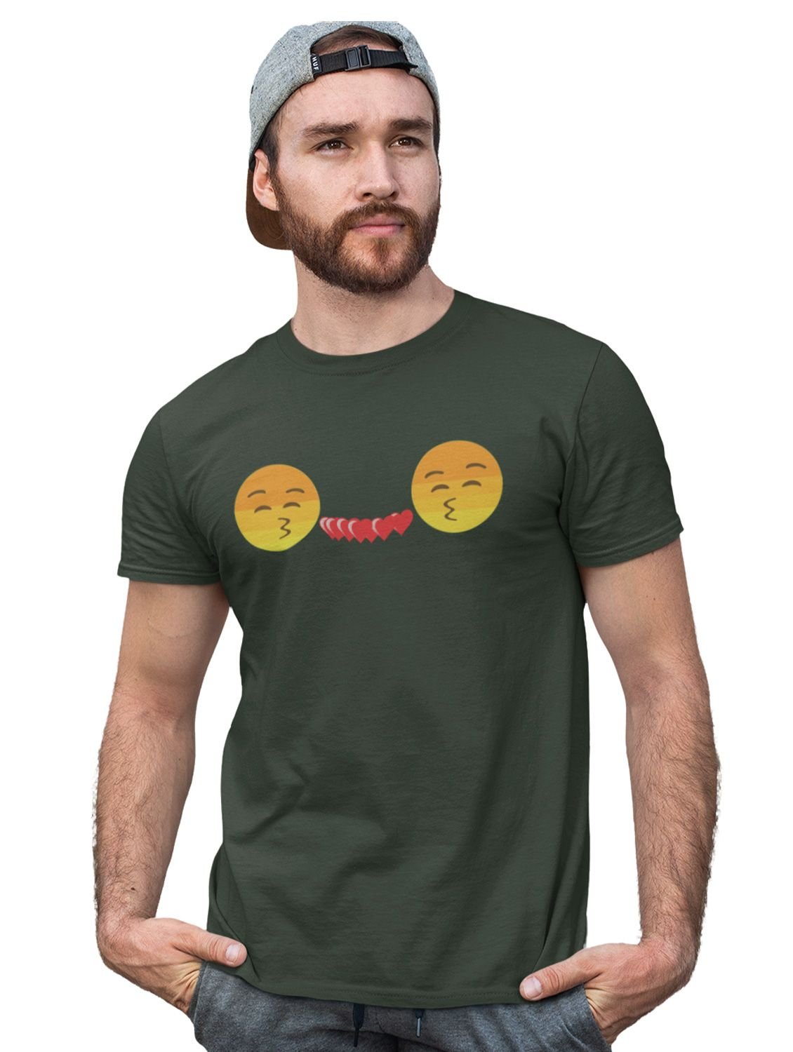 Couples Showing Flying Kiss Emoji T-shirt (Green) - Clothes for Emoji Lovers -Foremost Gifting Material for Your Friends and Close Ones