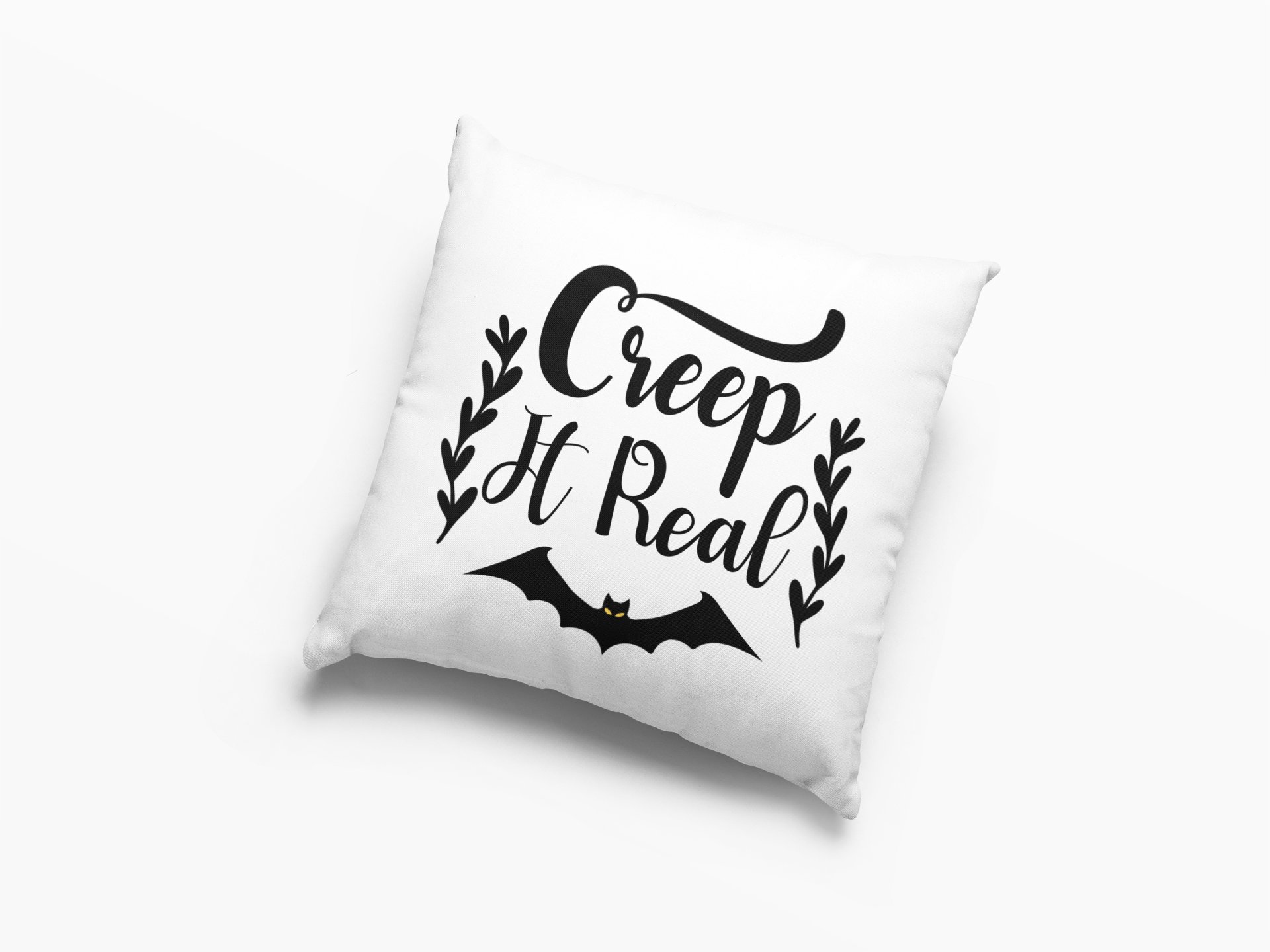 Creep it real-Bat Black Text -Halloween Theme Pillow Covers (Pack Of 2)