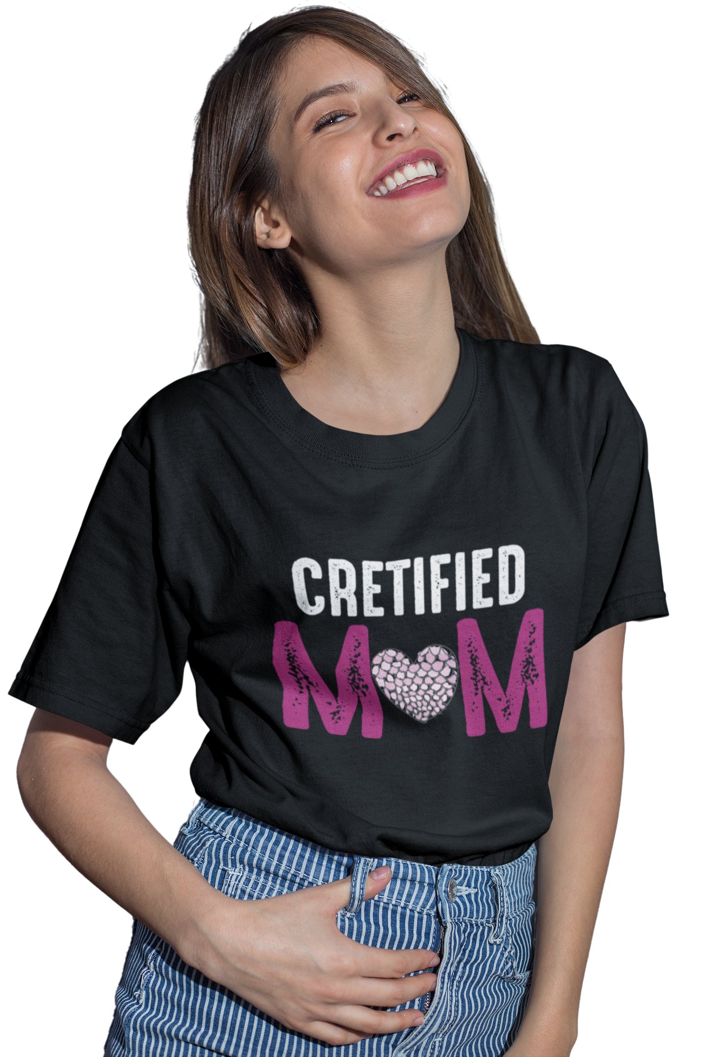 Cretified Mom-printed family themed cotton blended half-sleeve t-shirts made for women (black)