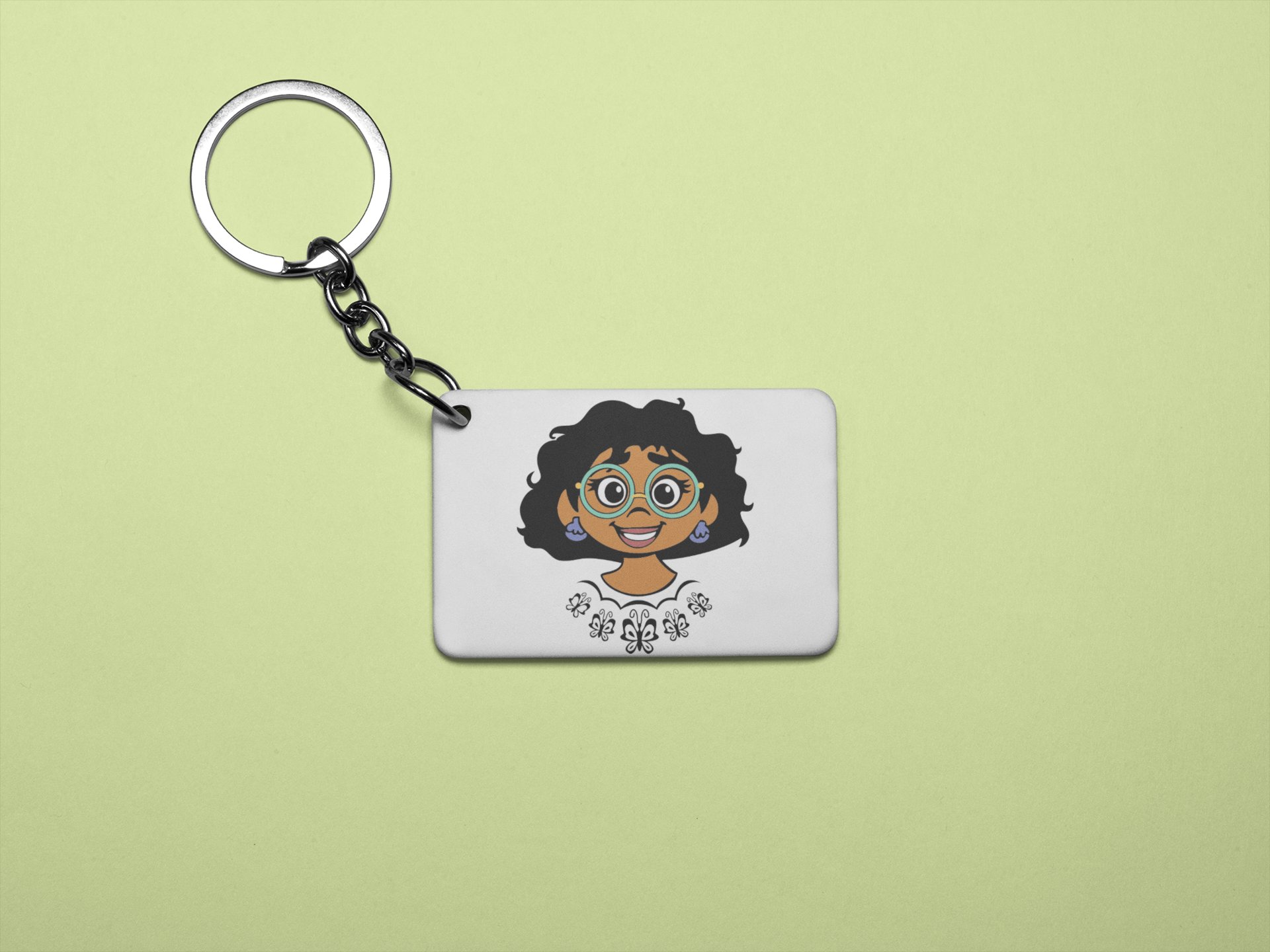 Curly hair girl, green spects - Printed acrylic animated Keychain(Pack Of 2)