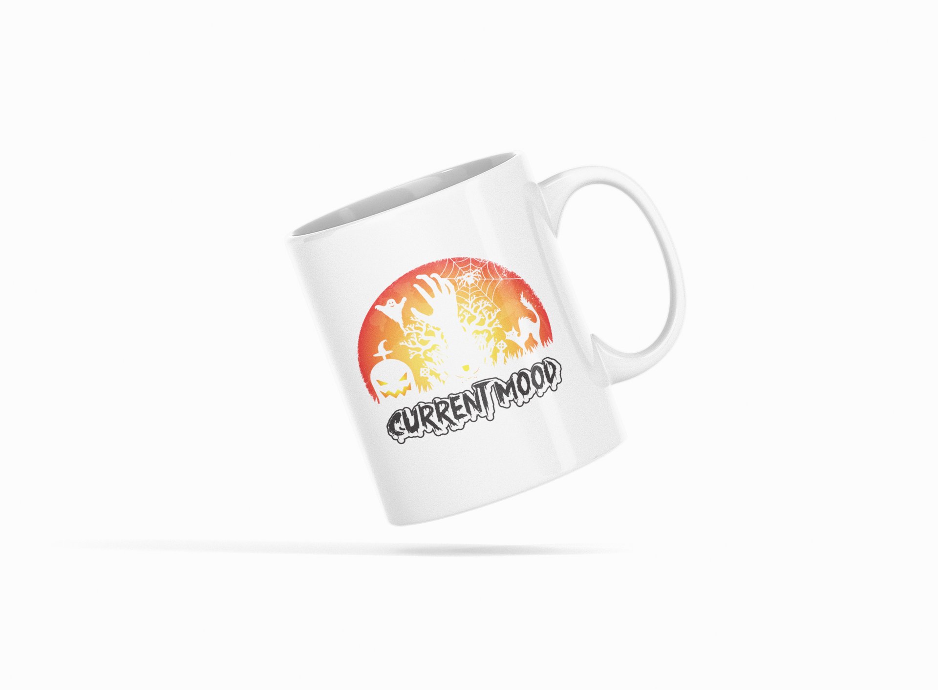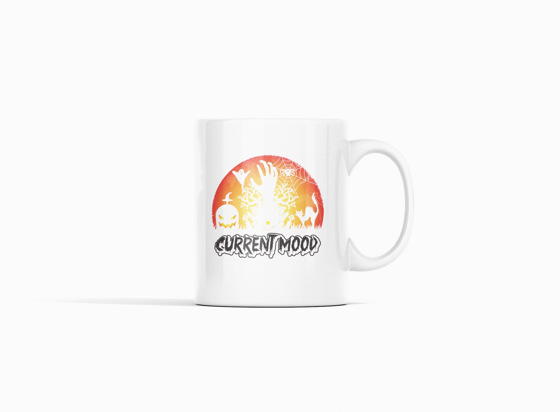 Current Mood Black And White Text-Halloween Themed Printed Coffee Mugs