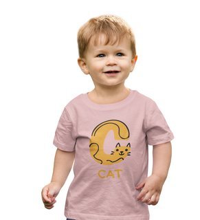 Cute cat, Boys Cotton Text Print Tshirt (baby pink)