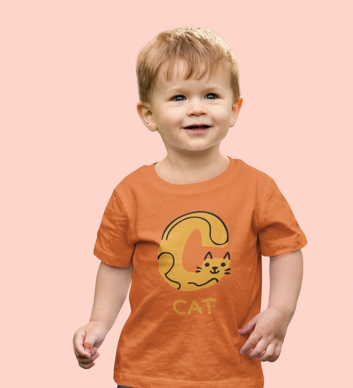 Cute cat, Boys Cotton Text Print Tshirt (orange)