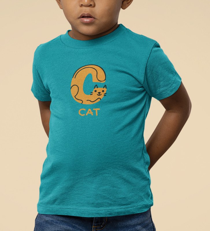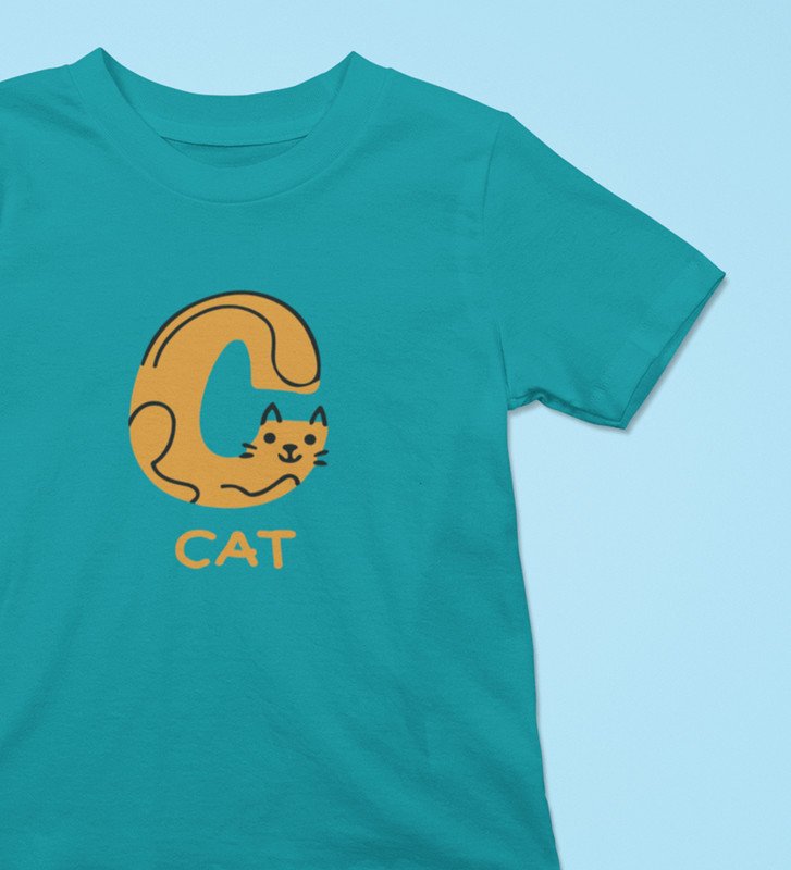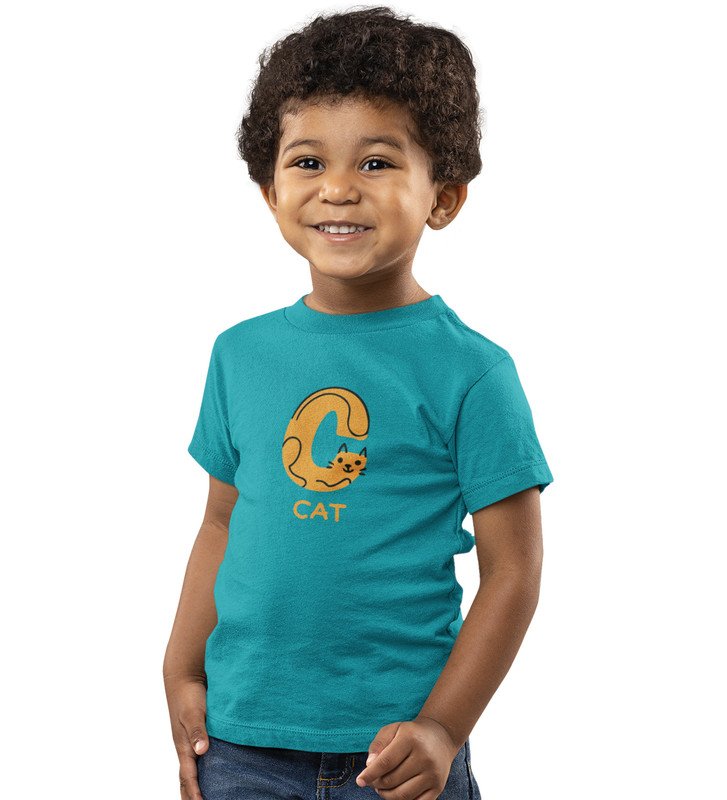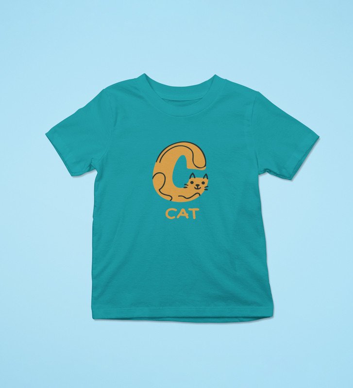 Cute cat, Boys Cotton Text Print Tshirt (Teal)