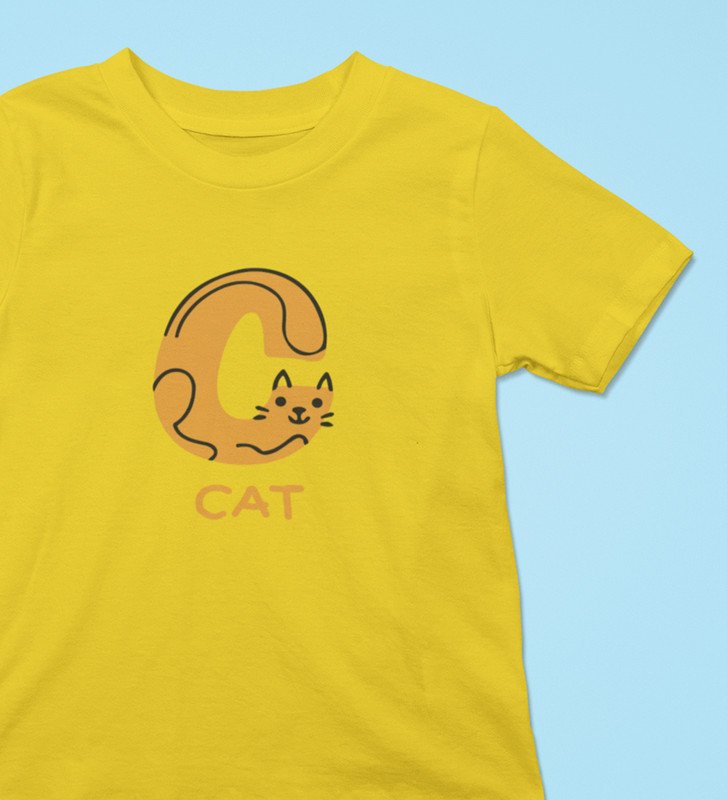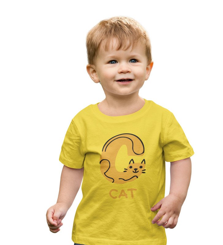 Cute cat, Boys Cotton Text Print tshirt (yellow)
