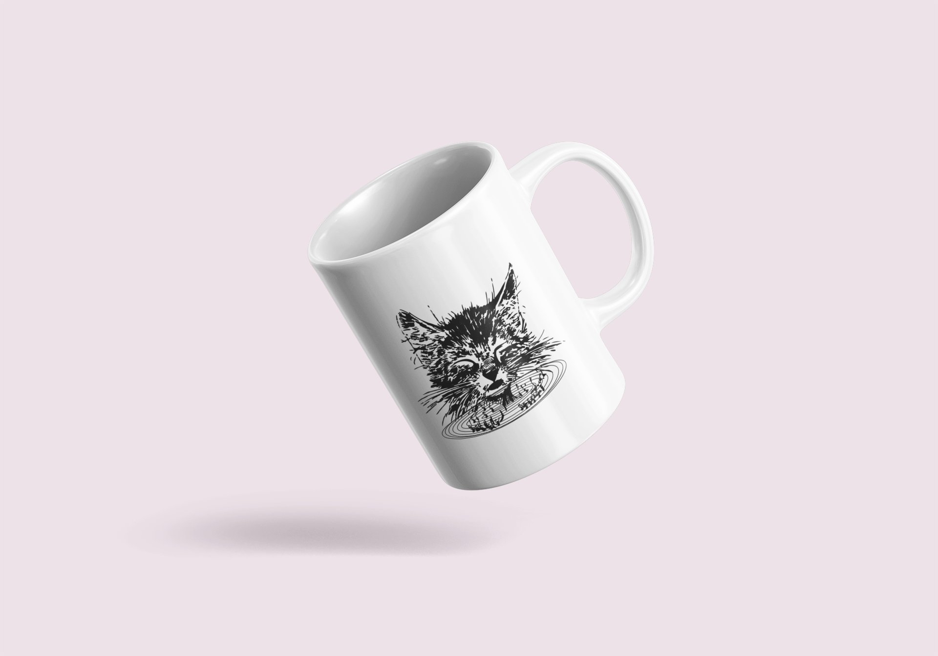 Cute Cat - line art themed printed ceramic white coffee and tea mugs/ cups