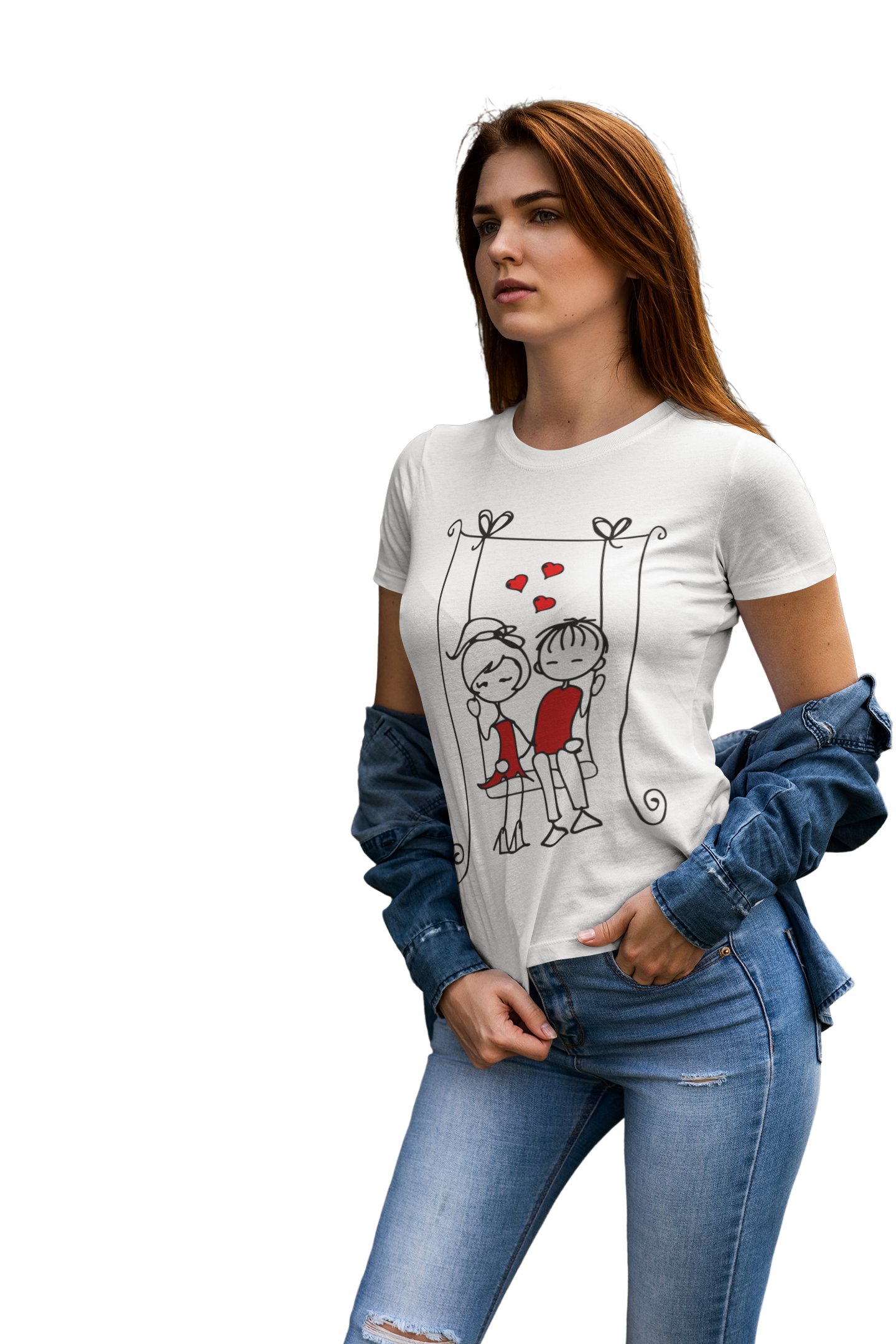 Cute Couple Holding Hands On A Swing for Women Red -Printed T-Shirts