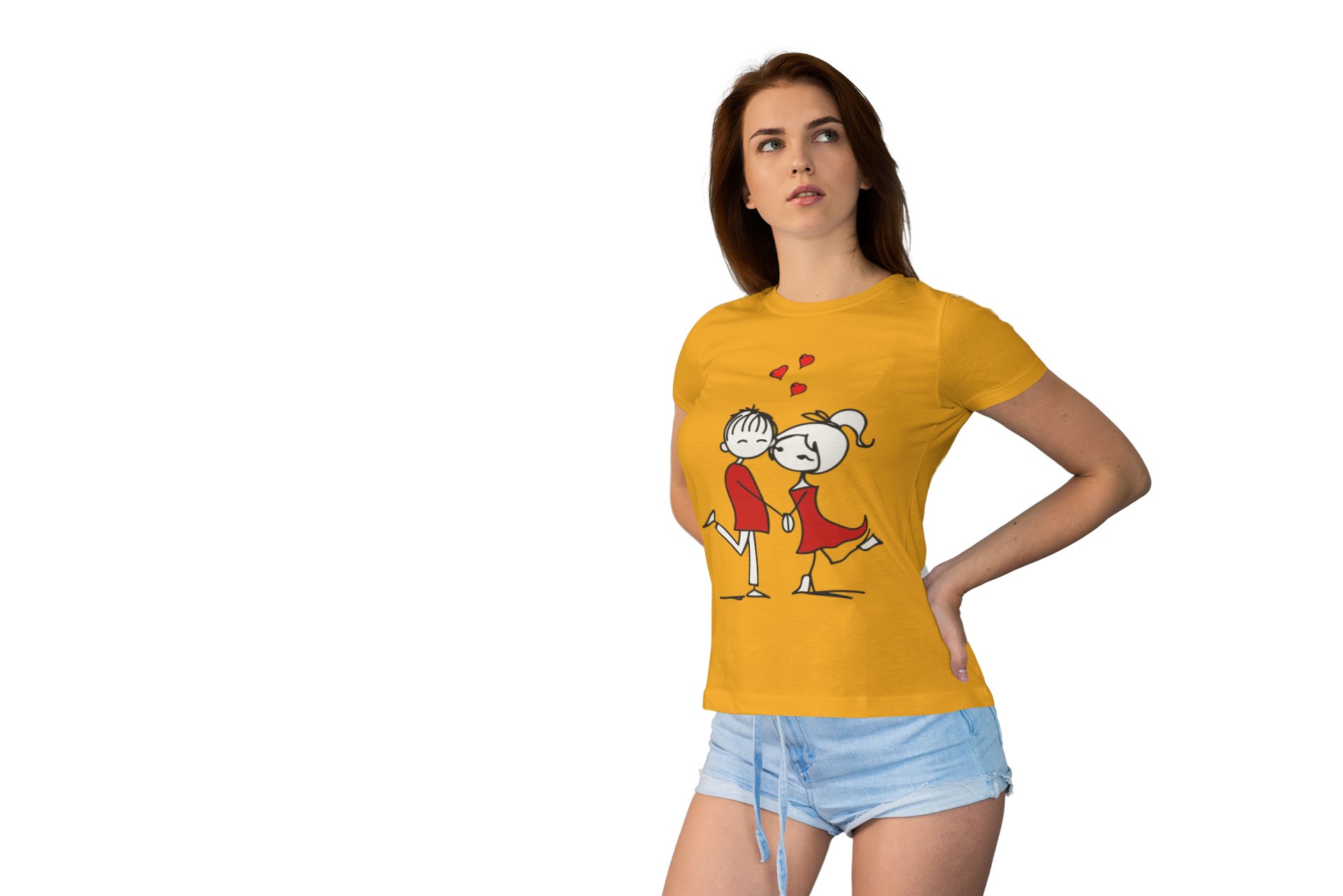 Cute Couple Holding Hands Romantic Printed Yellow T-Shirts