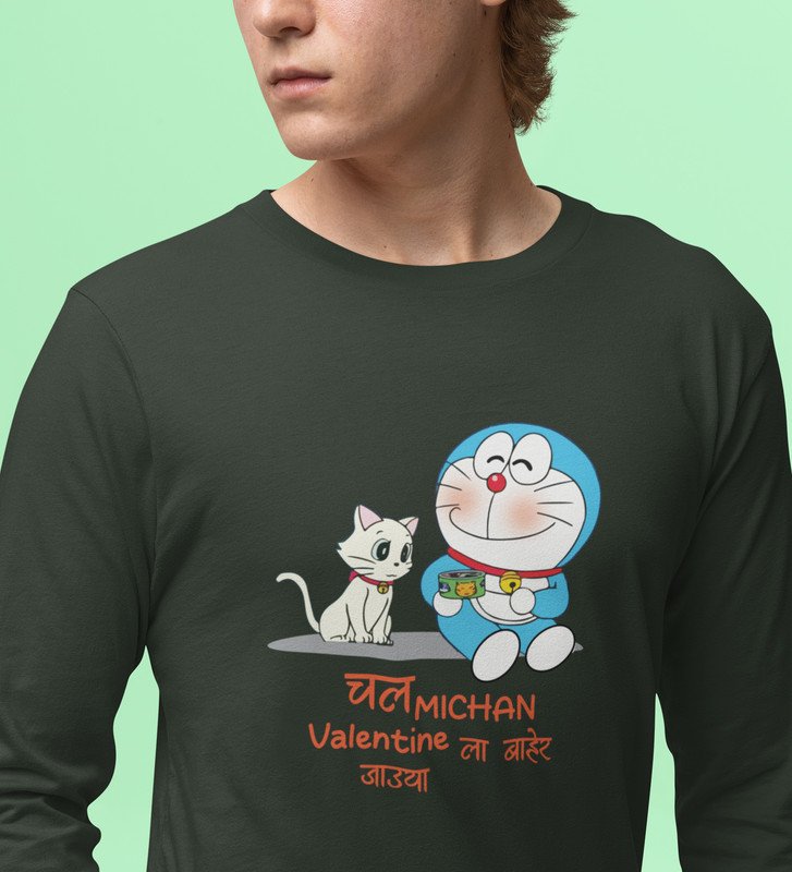Cute Couples: Printed (green) Full Sleeve T-Shirt For Singles