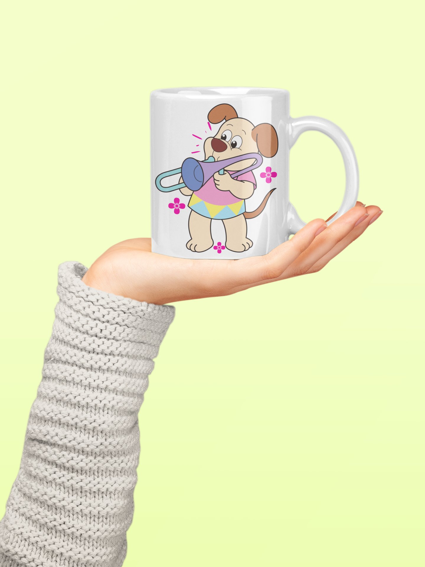 Cute Puppy Illustration - pets themed printed ceramic white coffee and tea mugs/ cups for pets lover people
