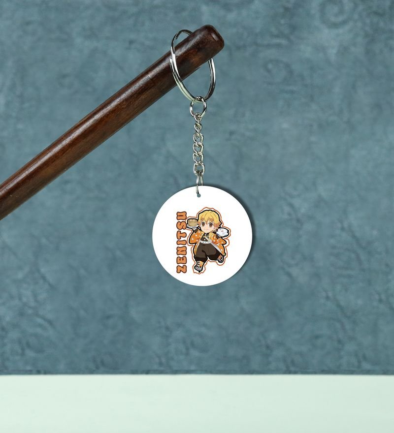 Cute Yellow-Haired Lightning Hero Inspired Printed Round Keychain Pack of 2