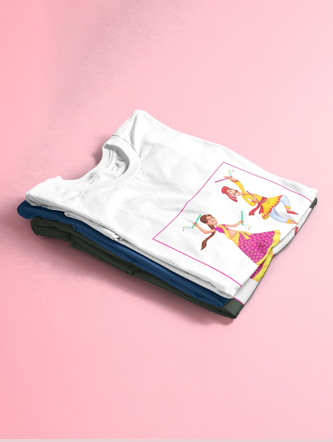 Dandiya days are coming printed unisex adults round neck cotton half-sleeve white tshirt specially for Navratri festival/ Durga puja