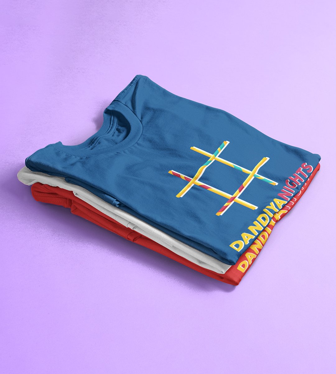 Dandiya Nights (Hashtag) printed unisex adults round neck cotton half-sleeve blue tshirt specially for Navratri festival/ Durga puja