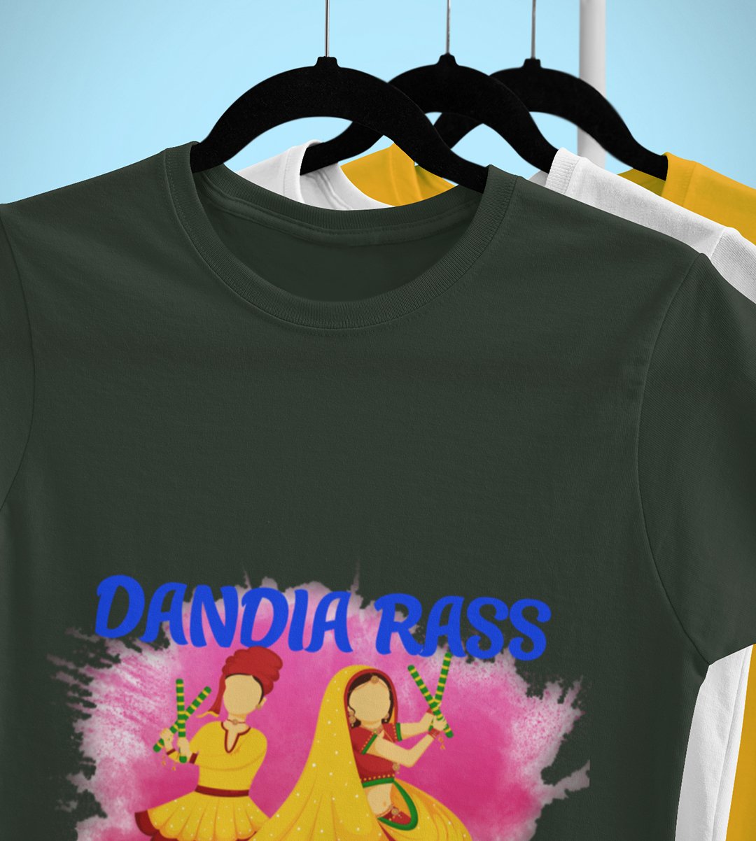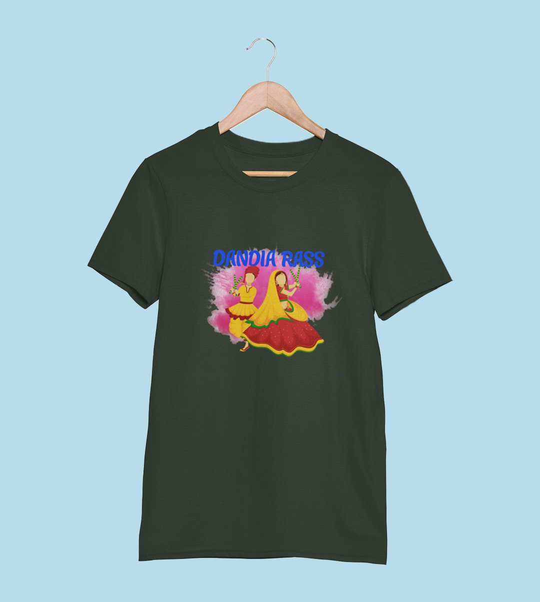 Dandiya Rass printed unisex adults round neck cotton half-sleeve green tshirt specially for Navratri festival/ Durga puja