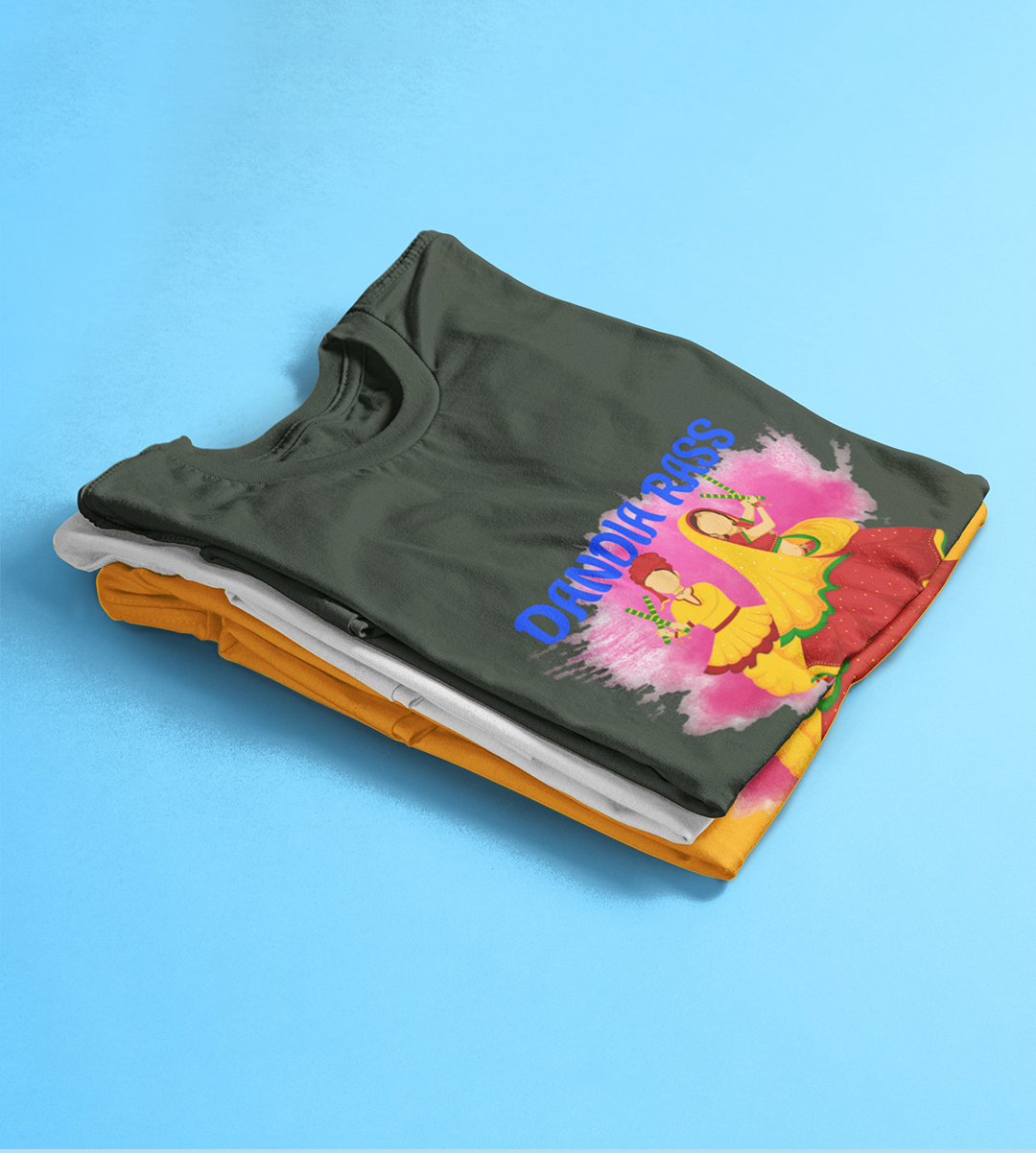 Navratri is a very auspicious festival for hindus. It takes place at the beginning of October and sometimes September. Enjoy the 9 days of festivities with full zeal and make yourself submerged in the love of Maa Durga. Navratri is also known as Durga Puja. And with this Tees, you can shine like a star during this festive season with our navratri themed cotton half sleeved Tshirts. You can pair our t-shirts with trousers and denim of your choice and make it a weekday smart casual or weekend wear. This is durable. This tshirt is smooth and soft which makes you comfortable to wear during all seasons. The printing in it is durable and odourless. It has five sizes, S,M,L,XL,XXL. The Tshirt colour is intact even after repeated washes. It can be kept in your wardrobe and hangers. Please avoid washing mashine to clean this Tee, it may affect the print. Hand wash only. We have brought you many navratri related designs printed on our different colour Tshirts to choose from. Grab it now.