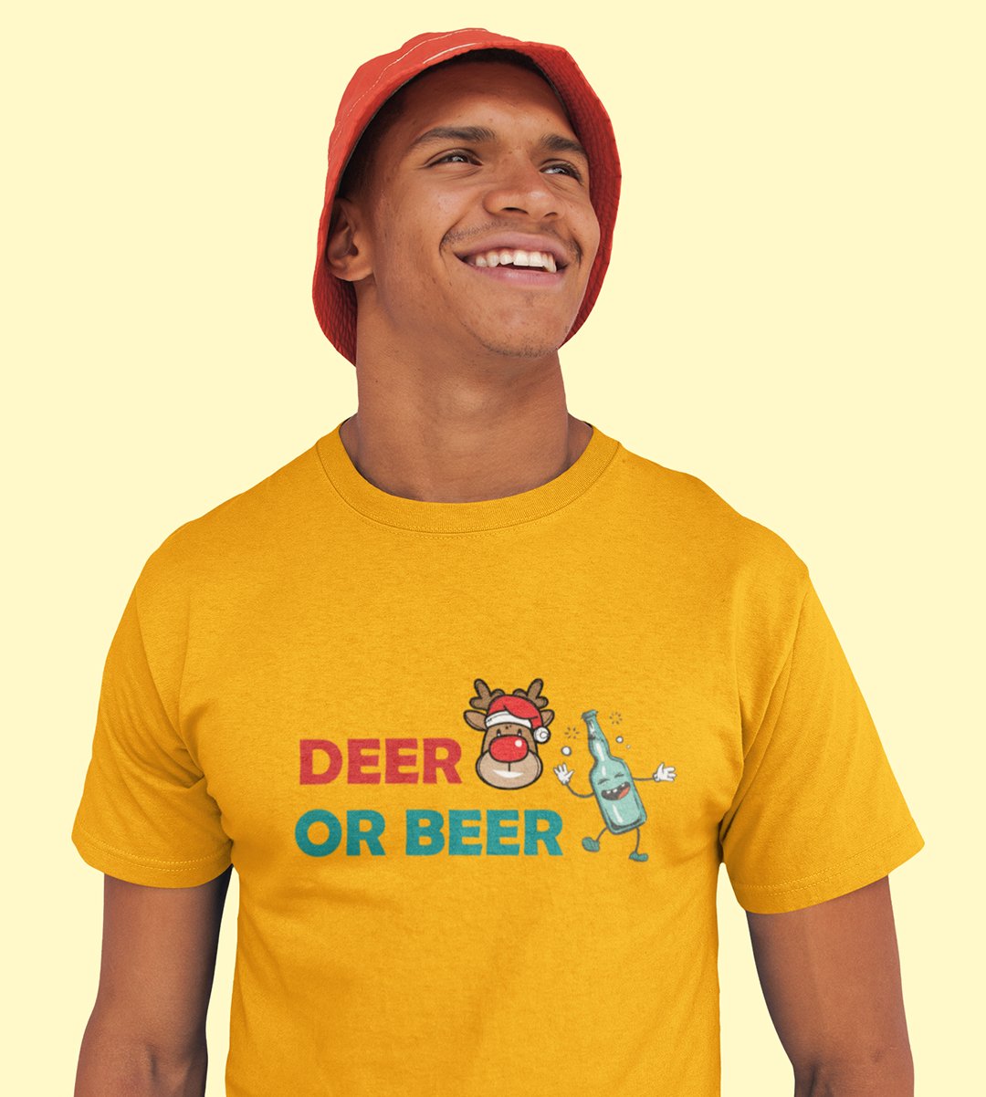 Deer Or Beer: Beautifully Crafted T-shirts(Yellow) Best Gift for Boys Girls