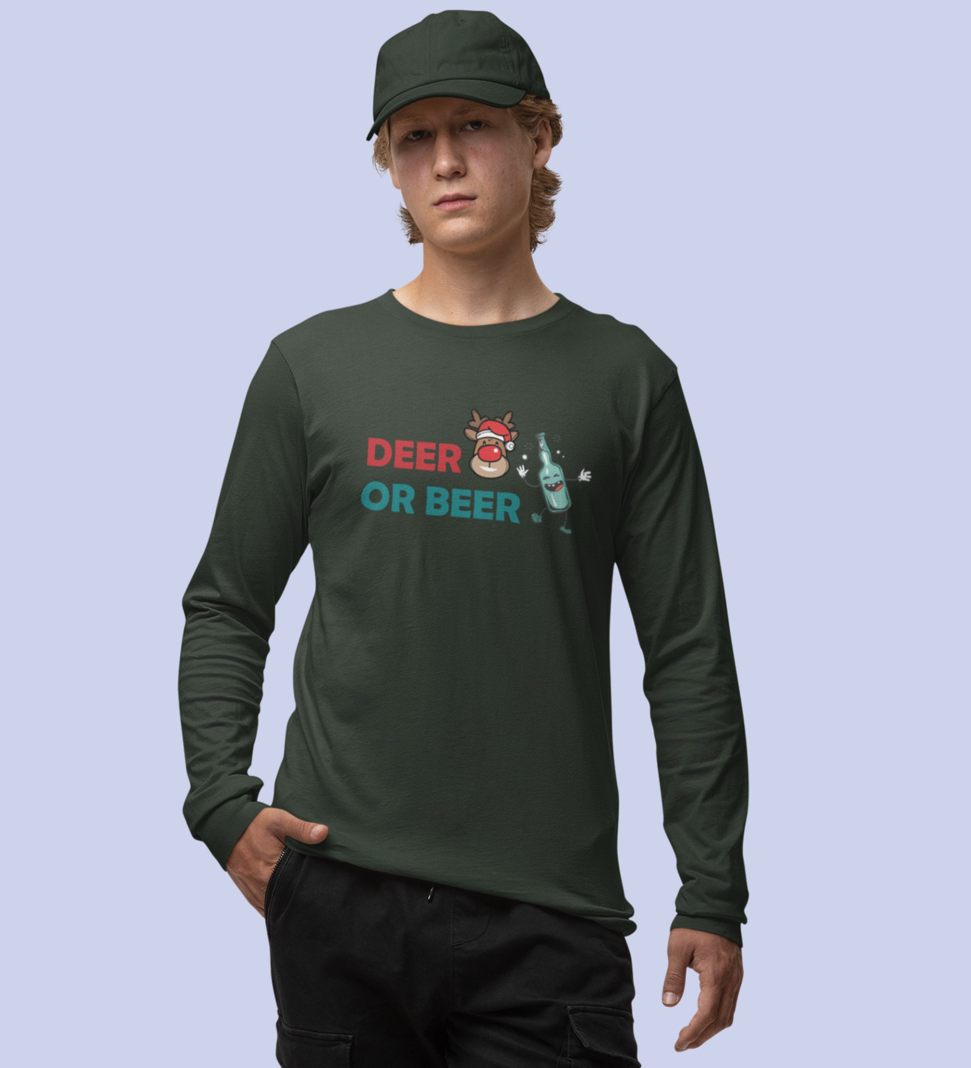 Deer Or Beer: Beautifully CraftedFull Sleeve T-shirtsGreen Best Gift for Boys Girls