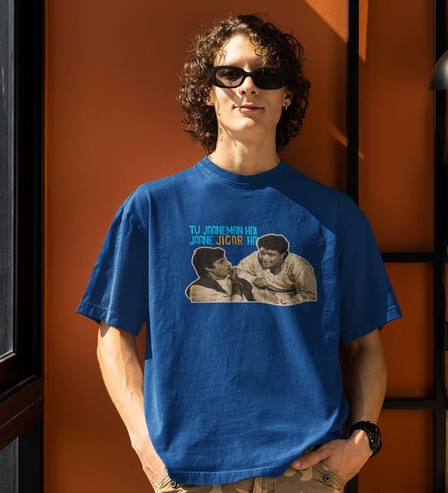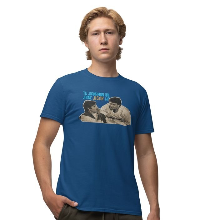 Defination Of Friend Blue Round Neck Cotton Half Sleeved Men T-Shirt with Printed Graphics