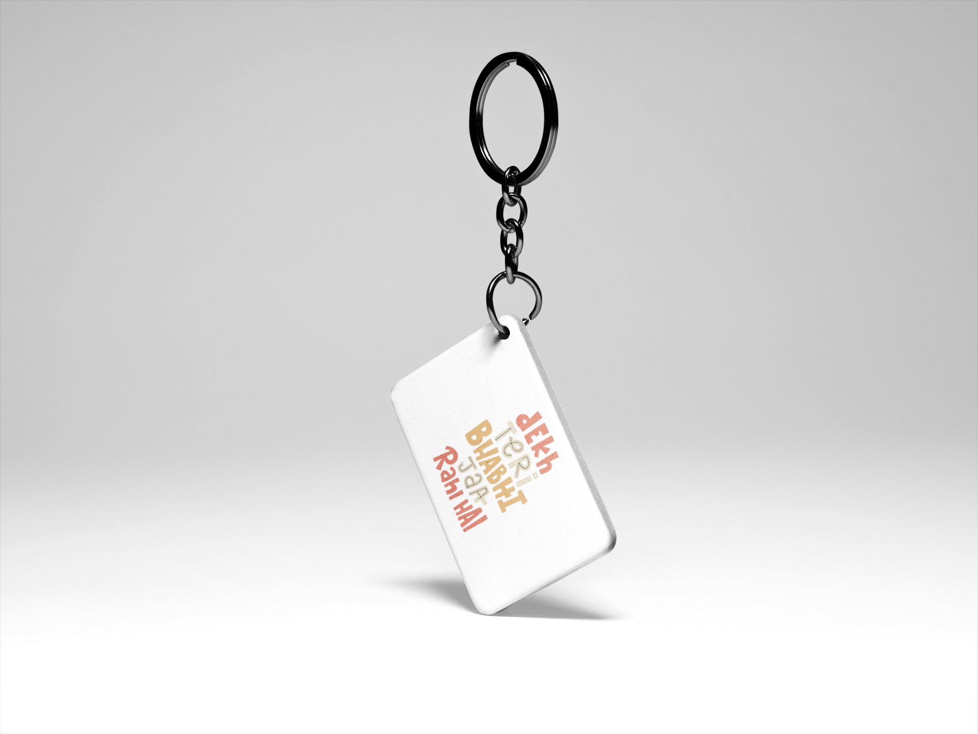 Dekh Tere Dhabhi Ja Rahe Hai acryllic printed white keychains/ keyrings for bollywood lover people(Pack Of 2)
