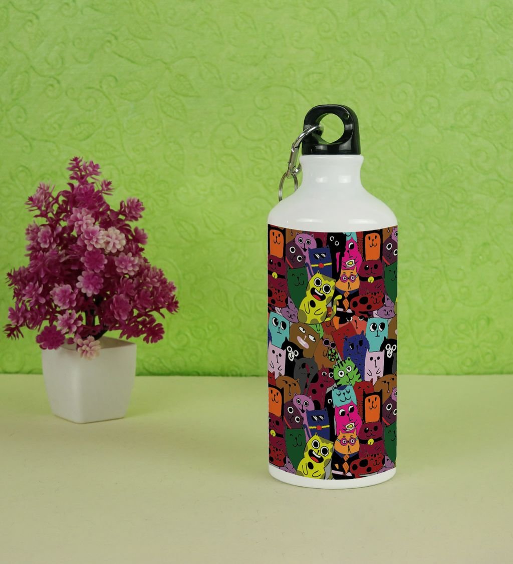 Delightful Colorful Heck Characters for a Unique Touch Doodles Printed Aluminium Water Bottle 600ml