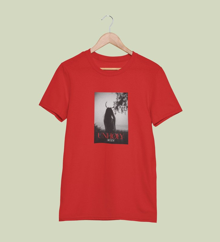 Devil's Body, Street Fusion: Red Trendy Front Print Round Neck T-Shirt - Men's Edition