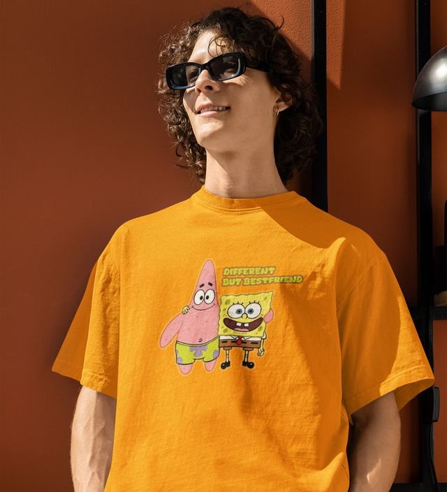 Different But Bestfriend Yellow Round Neck Cotton Half Sleeved Men T Shirt with Printed Graphics