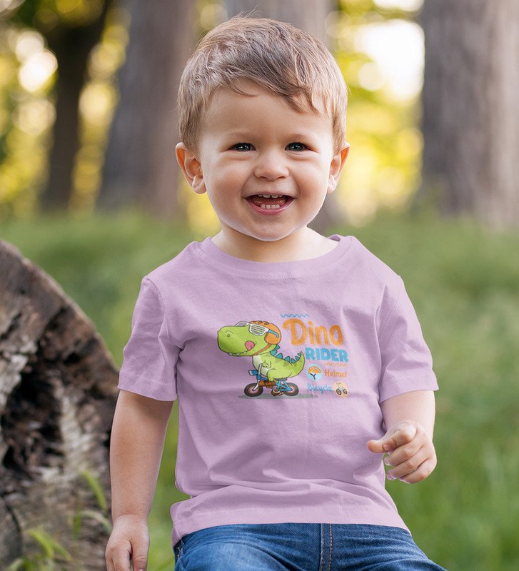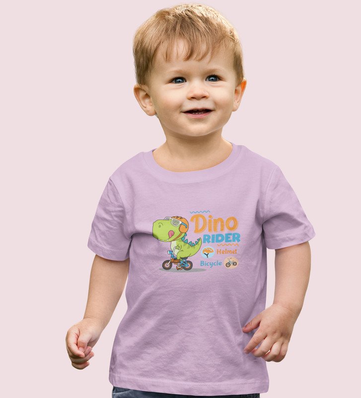 Dino Rider, Boys Round Neck Printed Blended Cotton T-shirt (Purple)