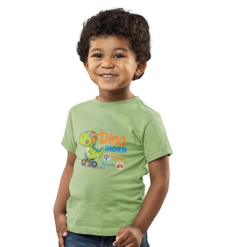 Dino Rider, Boys Round Neck Printed Blended Cotton Tshirt
