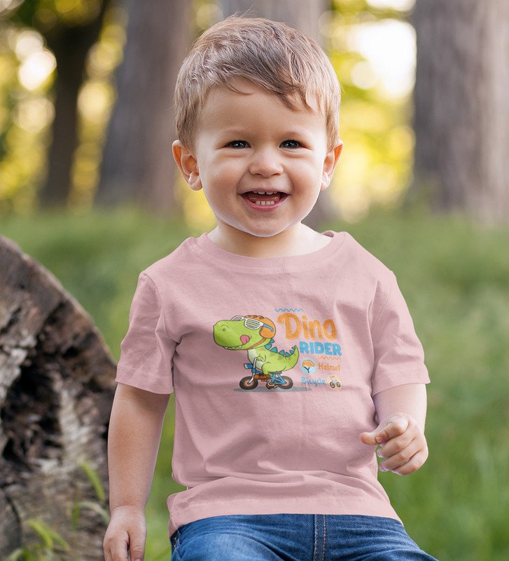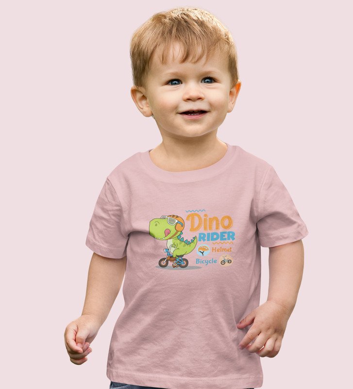 Dino Rider, Boys Round Neck Printed Blended Cotton Tshirt (baby pink)